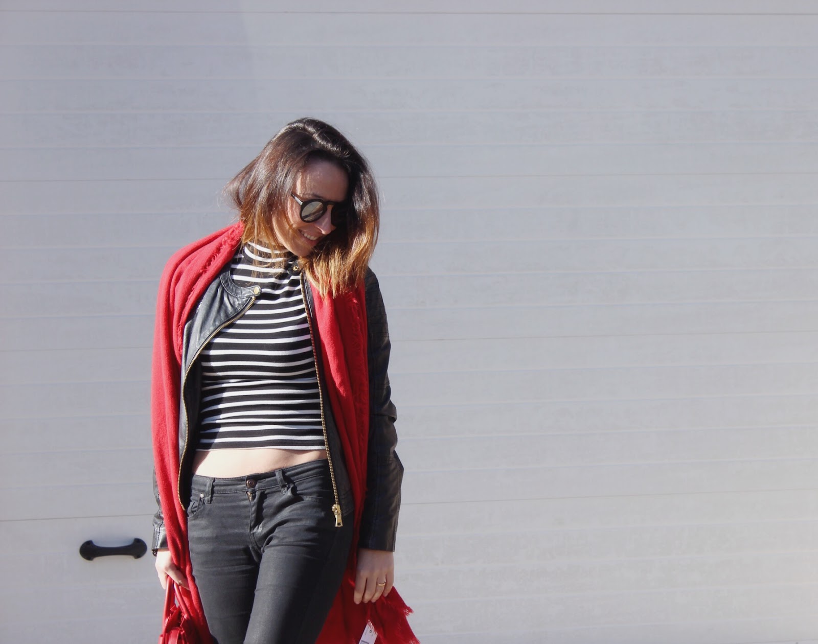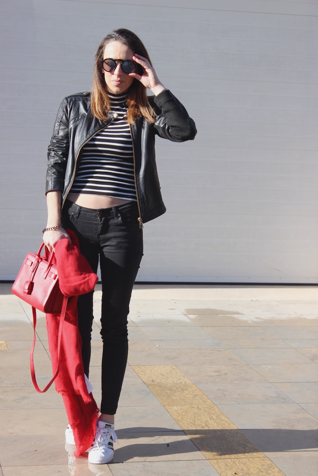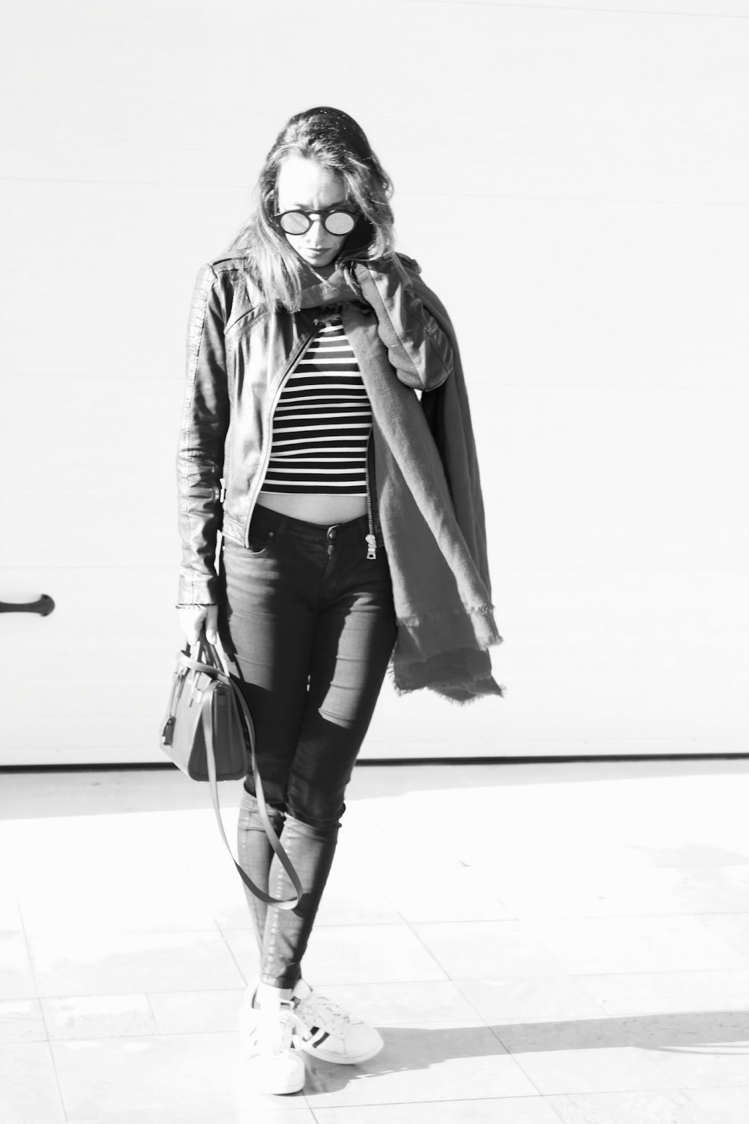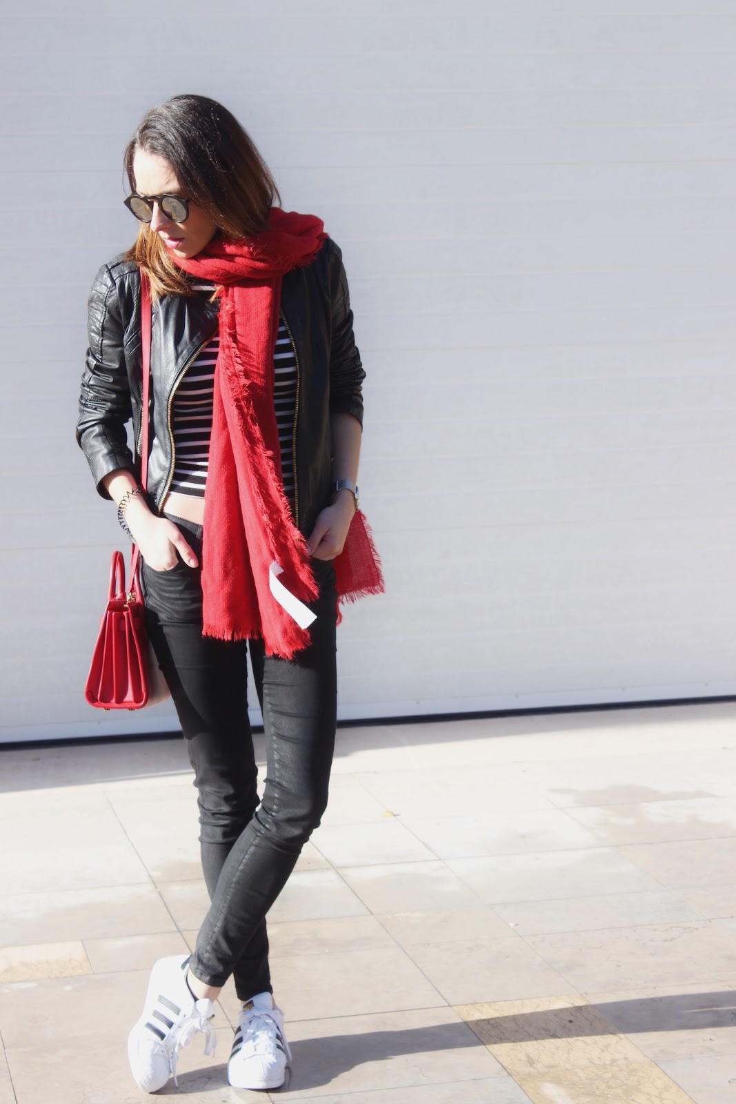 Look: Jeans e Blusão: Mango / Top e Lenço: Stradivarius / Tenis: SuperStar Adidas / Bolsa: Saint Laurent / Óculos de Sol: Lovely Breeze